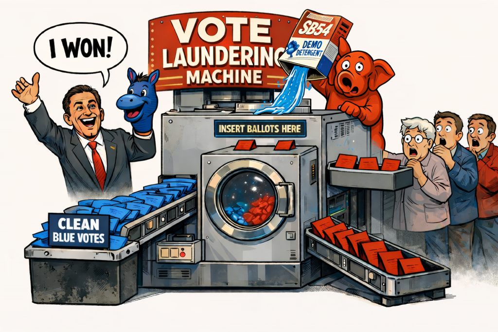 At the national level, we find the same things have been happening ever since the modern two-party system took control in 1854. Only the schemes differ slightly in implementation, but the effect is the same. The practical upshot of this is that nearly every candidate elected at the state and national level today is a democrat with a lowercase d. This explains why we are being led by a uniparty, and how the corruption got to be so bad. It is because the checks and balances in our government were erased. Vote laundering is rampant today at both the state and national levels, and this effect preceded SB54 by more than a century. SB54 just adds one more lever to the toolbox to trigger the trapdoor of partisan direct primaries and dispose of candidates the deep state doesn’t want in office.